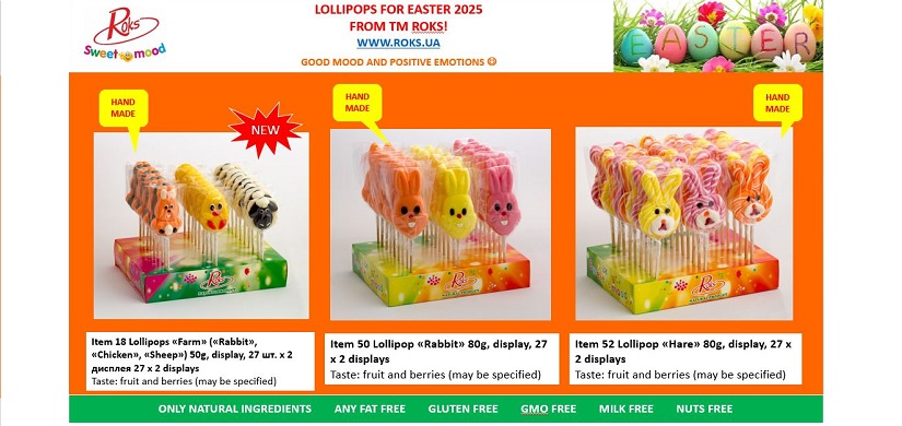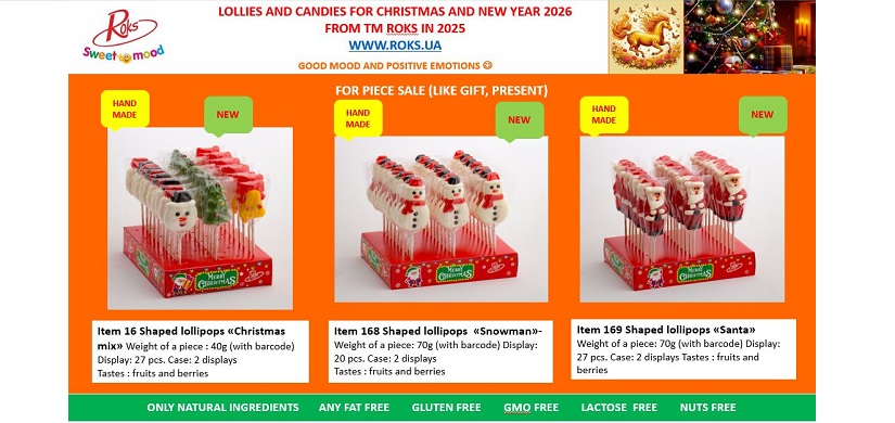 Льодяники ТМ «Рокс» виготовлені на основі високоякісної сировини – цукру та глюкозного сиропу українського виробництва, з додаванням лише натуральних барвників та ароматизаторів, без жодних синтетичних добавок. Використання новітніх технологій дозволяє отримувати продукцію високої якості. Асортимент продукції налічує понад 170 найменувань льодяників. Деякі з них не мають аналогів. Значну частину асортименту займає ручна робота. Цукерки, виготовлені руками досвідчених майстрів, унікальні. Ручна робота завжди цінується покупцями. Також підприємство випускає льодяники на основі підсолоджувачів – сорбіту та ізомальту.