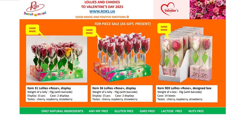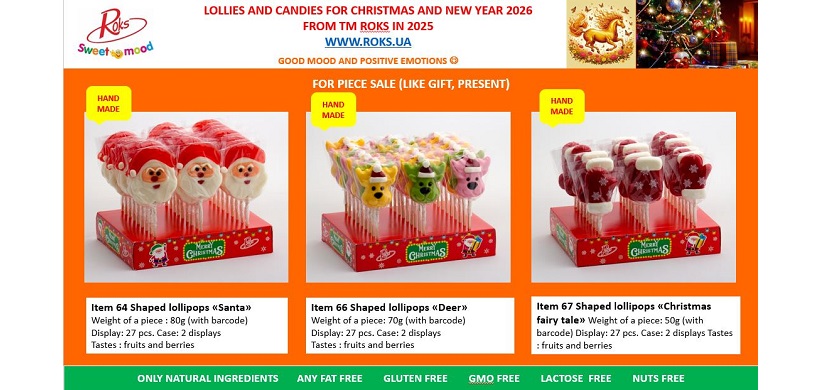 Льодяники ТМ «Рокс» виготовлені на основі високоякісної сировини – цукру та глюкозного сиропу українського виробництва, з додаванням лише натуральних барвників та ароматизаторів, без жодних синтетичних добавок. Використання новітніх технологій дозволяє отримувати продукцію високої якості. Асортимент продукції налічує понад 170 найменувань льодяників. Деякі з них не мають аналогів. Значну частину асортименту займає ручна робота. Цукерки, виготовлені руками досвідчених майстрів, унікальні. Ручна робота завжди цінується покупцями. Також підприємство випускає льодяники на основі підсолоджувачів – сорбіту та ізомальту.